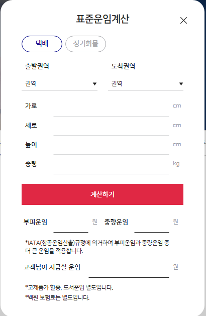 - 무게 또는 부피 중 큰 값으로 요금 산정
