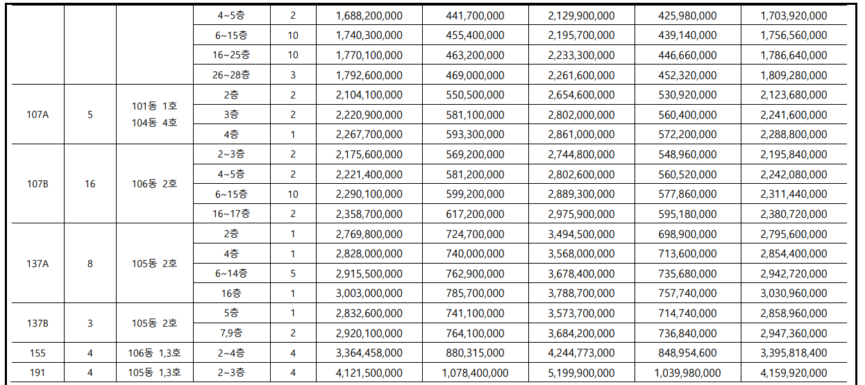 84타입 기준 계약금액만 4억 5천 정도가 필요하며 발코니 확장이 들어가면 최소 5억은 있어야 합니다. 거기에 취등록세 약7천만원을 더하면 최소 5억~ 6억정도의 현금을 보유해야 합니다. 옵션비는 별도입니다.