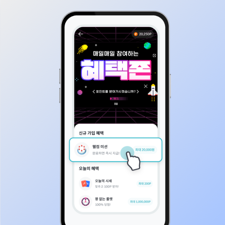 → 가입일로부터 30일 이내 '혜택존 > 웰컴 미션' 탭에서 미션 수행 시 지급