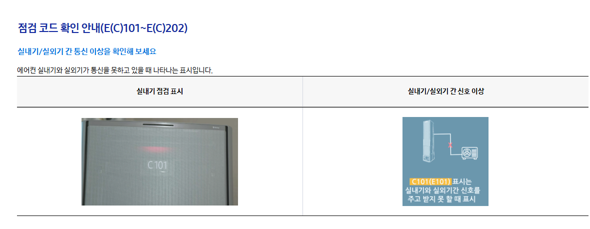 1️⃣ C101은 실외기에 문제가 생겼을 때 나타나는 코드입니다.