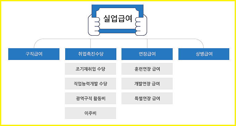 실업급여란 고용보험 가입 근로자가 실직하여 재취업 활동을 하는 기간에 일정금액의 급여를 지급함으로써 생계불안 극복과 생활의 안정을 도와주며 재취업의 기회를 지원해주는 제도입니다. 크게 구직급여와 취업촉진수당으로 나누어져 있습니다. 우리가 일반적으로 알고 있는 실업급여는 구직급여에 해당됩니다.
