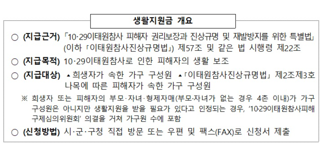 1. 이태원 참사 생활지원금 대상과 신청 방법