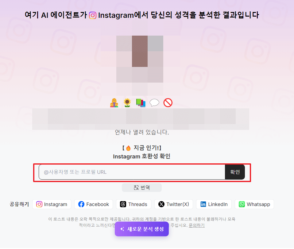 인스타그램 아이디만 넣으면 성격분석을 해주는 사이트인데요.