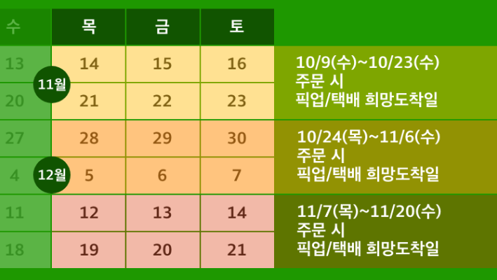 예약배송은 원하는 택배 희망도착일을 지정하면 집으로 택배를 받을 수 있습니다. 이때 배송희망일은 김장 전날로 해두시는 것이 좋습니다.