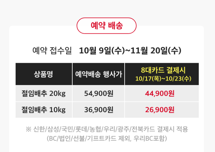 - 예약배송 행사가 54,900원 -> 8대 카드로 결제 시 44,900원