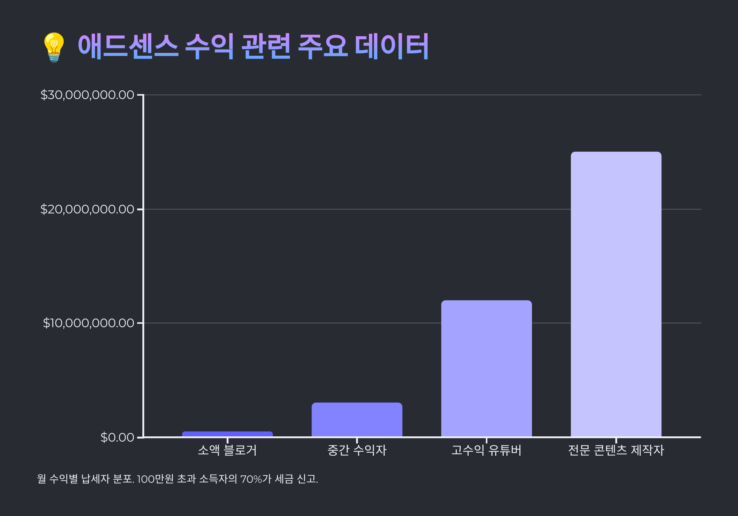 월 1,000달러 이상의 애드센스 수익이 발생하면 이 정보는 한국은행에 공유되며, 월 10,000달러 이상인 경우에는 국세청에 직접 통보됩니다. 이렇게 높은 수익을 올리는 블로거나 유튜버는 세금 신고에 더욱 신경 써야 합니다.