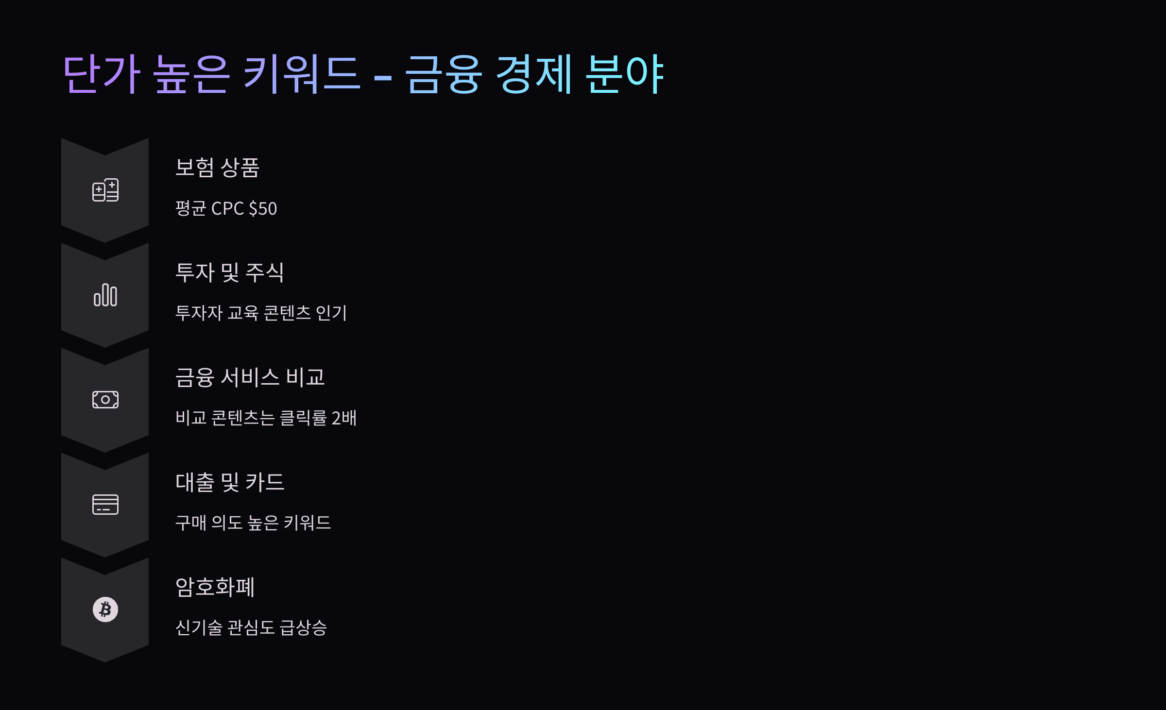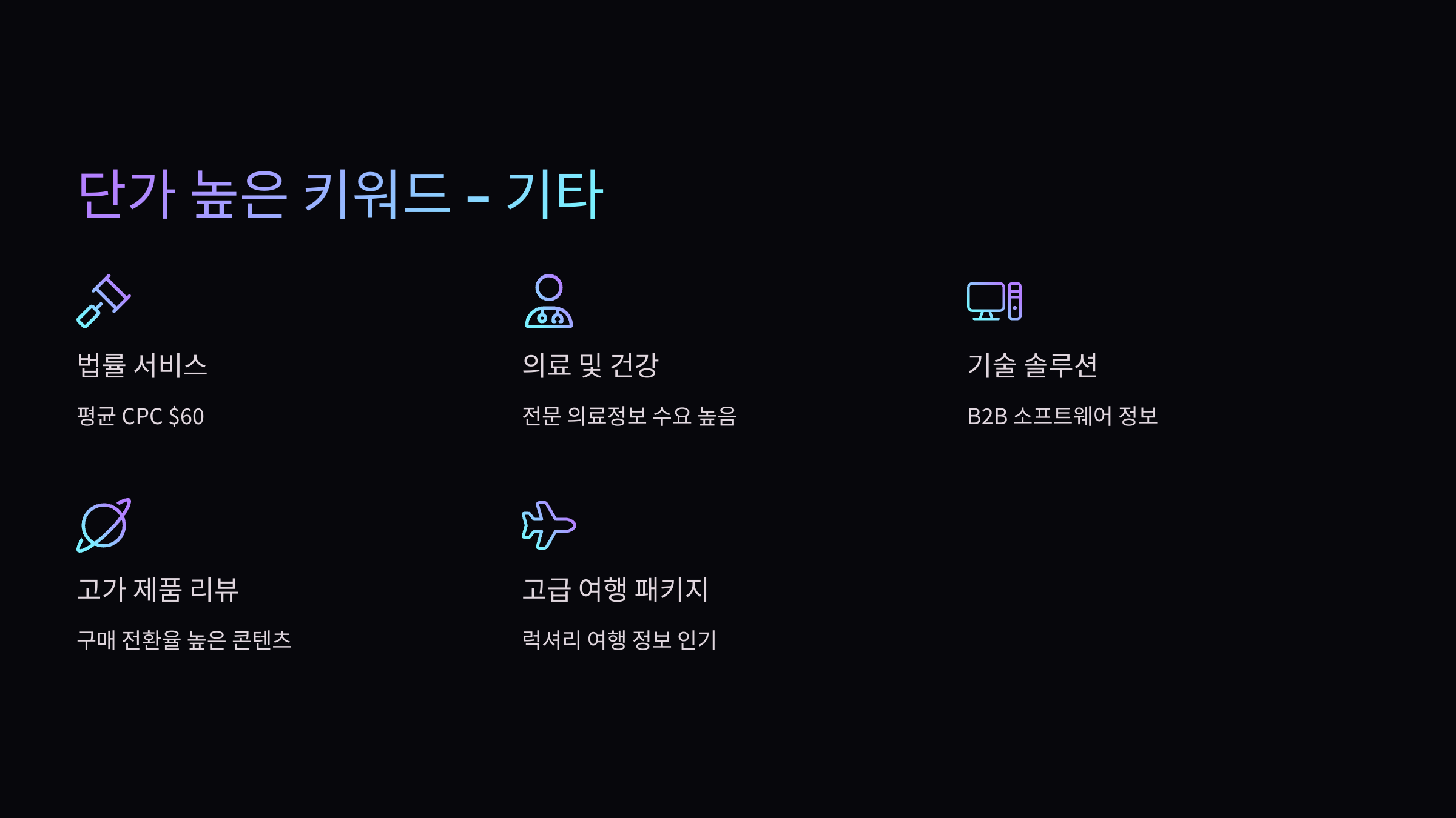 '디지털 마케팅 전략', 'SEO 대행사' 등은 대표적인 고단가 키워드에 해당합니다.