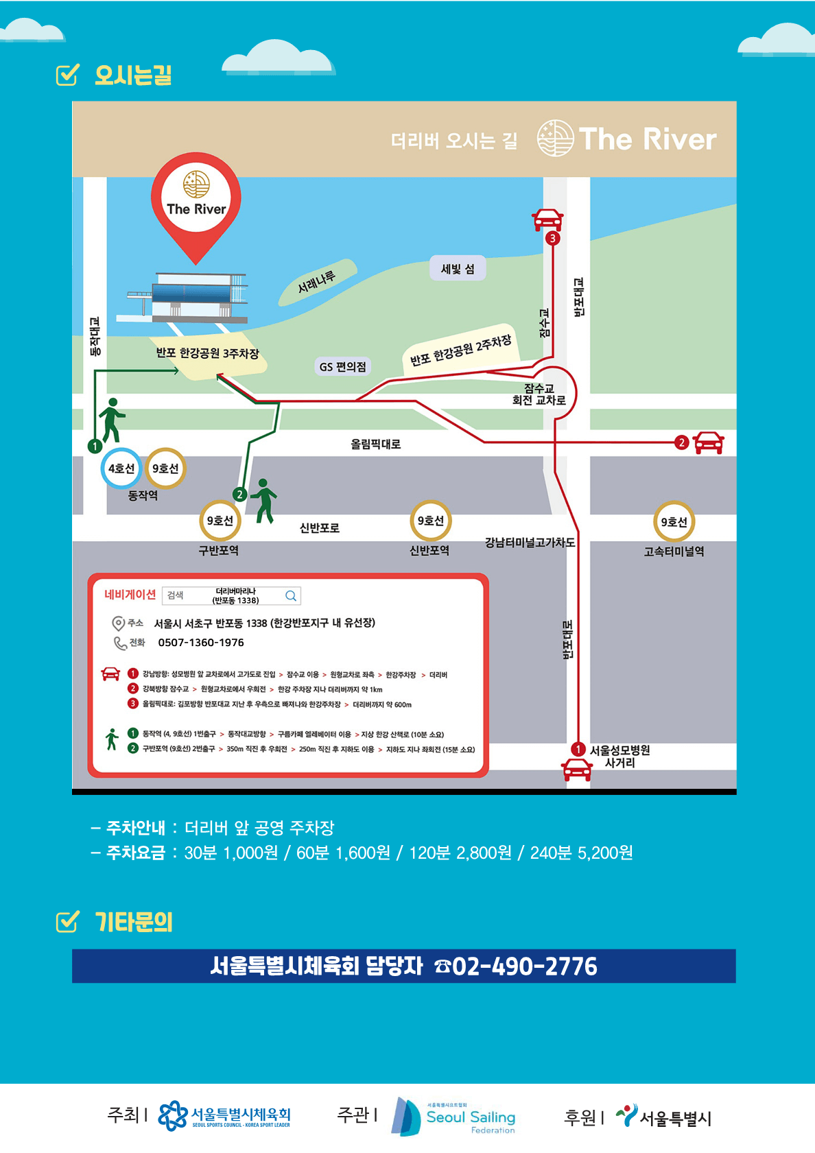 자세한 내용은 서울체육회누리집 이나 서울 한강 수상스포츠체험 안내문을 통해 알아보시길 바랍니다.