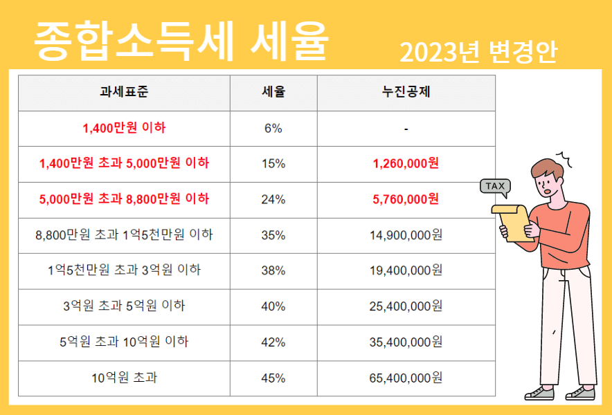 종합소득세 세율이 2023년 1월부로 변경이 되었다는 개정안이 발표가 되었었습니다. 그래서 많은 분들이 이번년도에 개정되었다면서요? 그럼 바뀐 룰이 적용되나요? 라고 생각하시는데요.