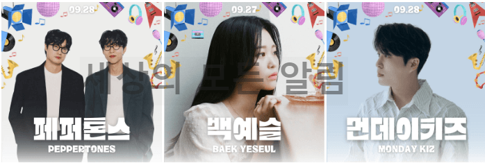 - 9월 10일 : 창모, 유다빈밴드, 카더가든, 권은비