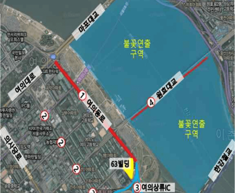 ✅ 올림픽대로, 노들길 ↔ 63빌딩 진입구간: 해당 구간은 탄력적으로 교통 통제가 이루어질 예정입니다.