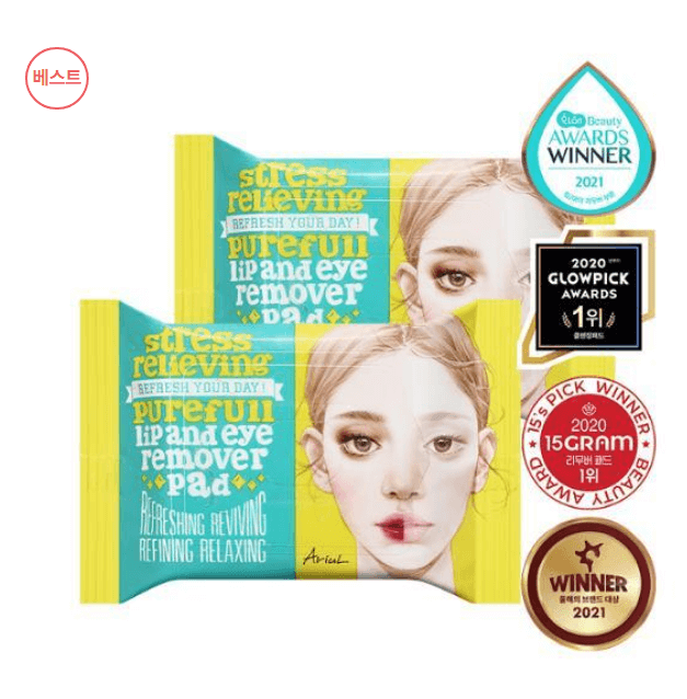 - 상품명: 아리얼 스트레스 릴리빙 립앤아이 리무버 패드 더블기획 (30매+30매)