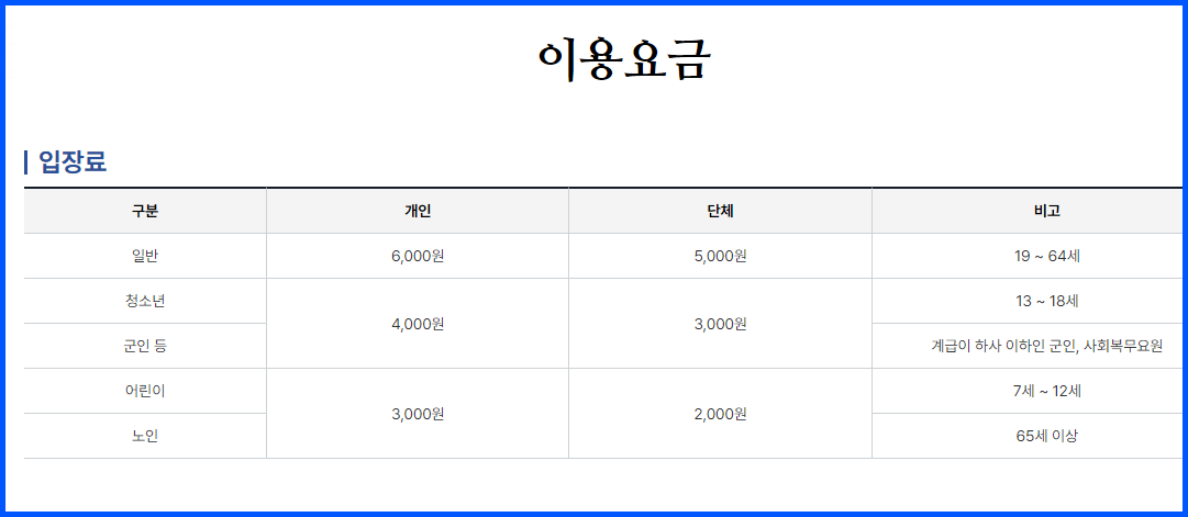 - 단체/경로 및 초등학생: 2,000원