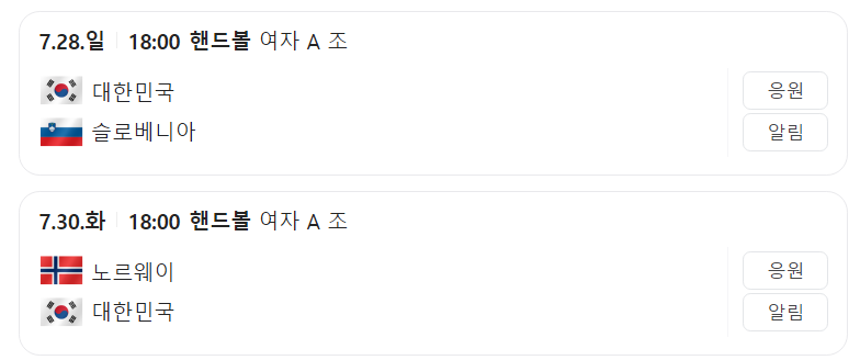 2. 2024 파리올림픽 여자핸드볼 경기일정