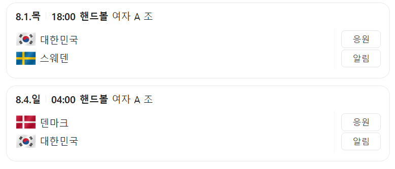 2. 2024 파리올림픽 여자핸드볼 경기일정