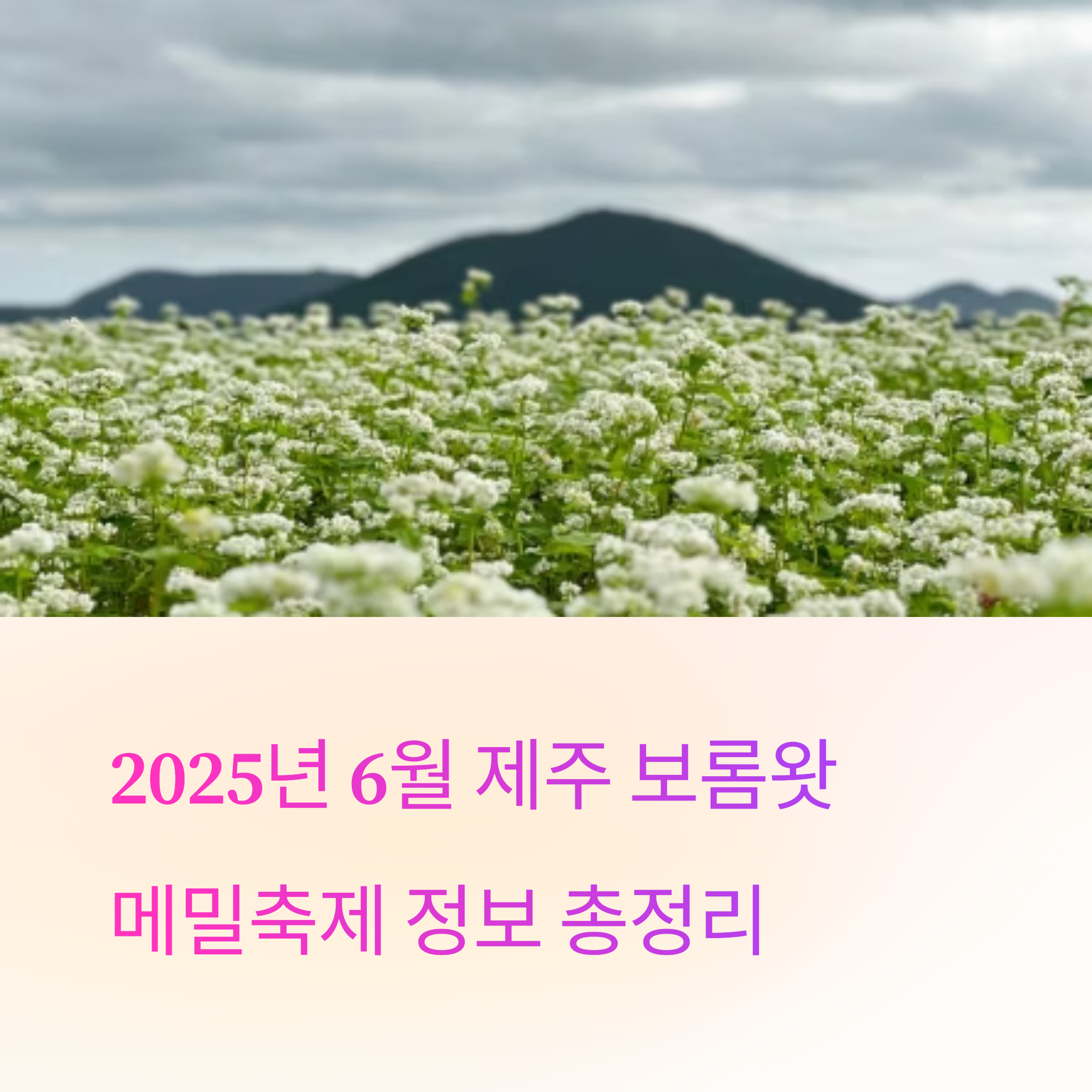2025년 6월 제주 보롬왓 메밀축제 정보 총정리. 안녕하세요! 제주 여행을 준비하고 계신 분들이라면, 한 번쯤은 ‘보롬왓 메밀축제’ 들어보셨을 텐데요.