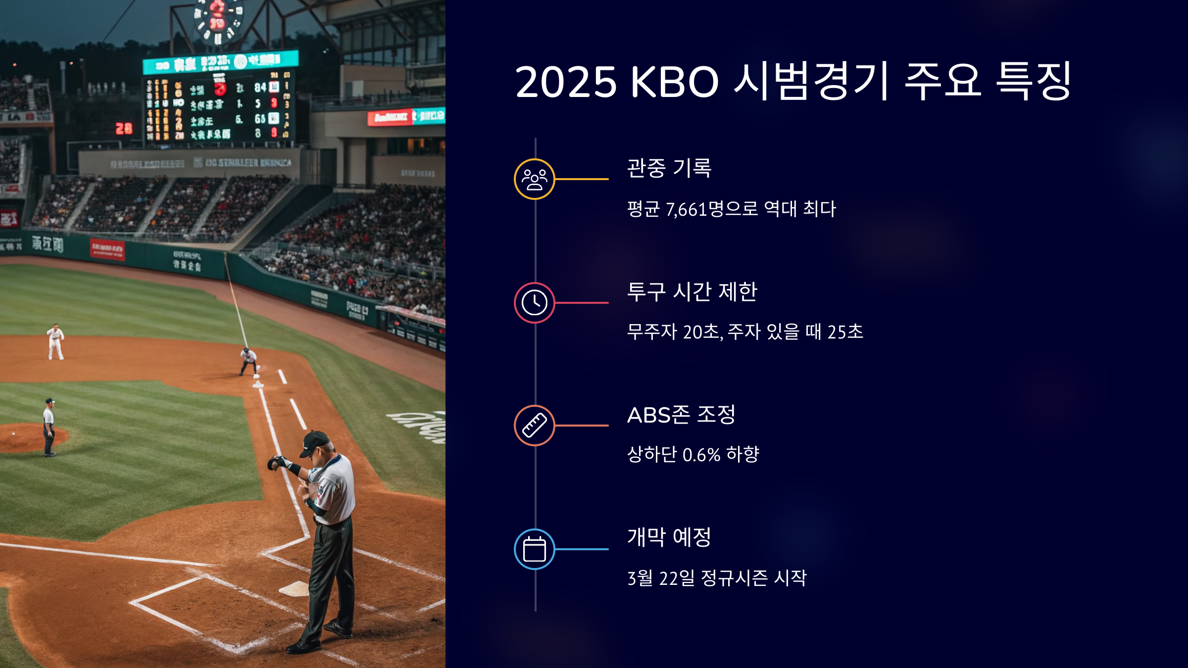 2025년 KBO 리그가 본격적인 개막을 앞두고 시범경기가 진행되면서 각 팀의 전력과 경기력이 평가되고 있습니다. 특히 이번 시범경기에서는 여러 팀이 치열한 경쟁을 펼치며 정규 시즌의 기대감을 더욱 높였습니다. 과연 이번 시즌 최종 우승팀은 누구에게 돌아갈까요? 두근두근 2025년 KBO 시범경기 성적과 시즌 전망을 알아보겠습니다.