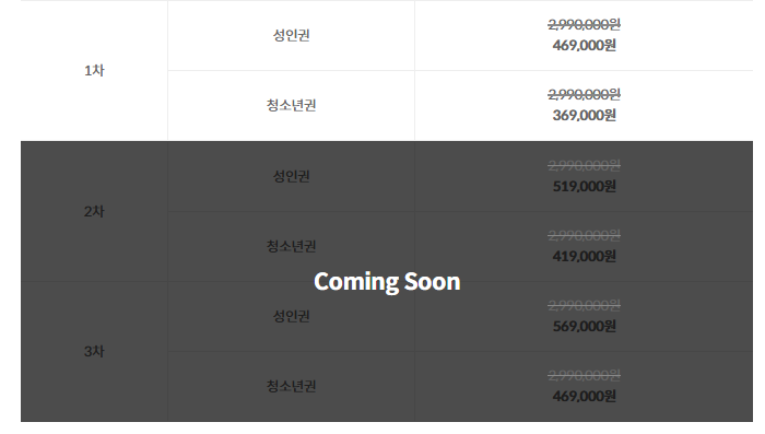 총 3차까지 판매가 진행되며 이번 9월 11일 오픈하는 1차가 가장 저렴합니다. 구매하실 분들은 서둘러 구매해주시는 것이 좋습니다.