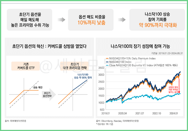기존 커버드콜의 단점은 지수가 상승할 경우 상승분의 100%를 반영하지 못한다는 점이 투자자들 사이에서는 늘 이슈가 되었었습니다.
